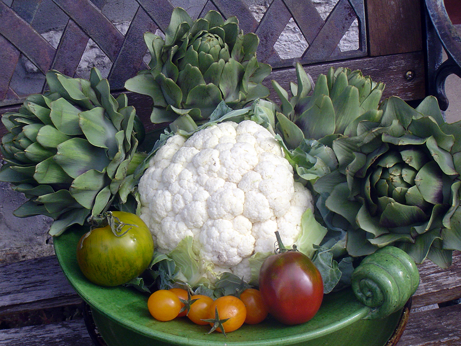 L’artichaut Gros vert de Laon. Originaire de Laon dans l’Aisne, ce « dinosaure » des variétés potagères est plus rustique que ses cousins bretons et plus tardif. Le Martinet Petit, blanc crémeux, ce chou-fleur à la fleur moins serrée que celle des variétés hybrides habituelles a fait la renommée de Saint-Omer depuis le XIXe siècle @ André Degon