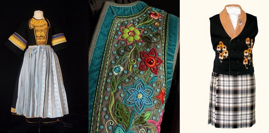 Inspiration Pays Bigouden©MLaureDubois Expo20AnsPascalJaouen; l’Ecole de Broderie de Pascal Jaouen, Modèle masculin. Bernard Galéron ; Ecole de Broderie de Pascal Jaouen, inspiration Pays Glazik©Béatrice Le Grand )
